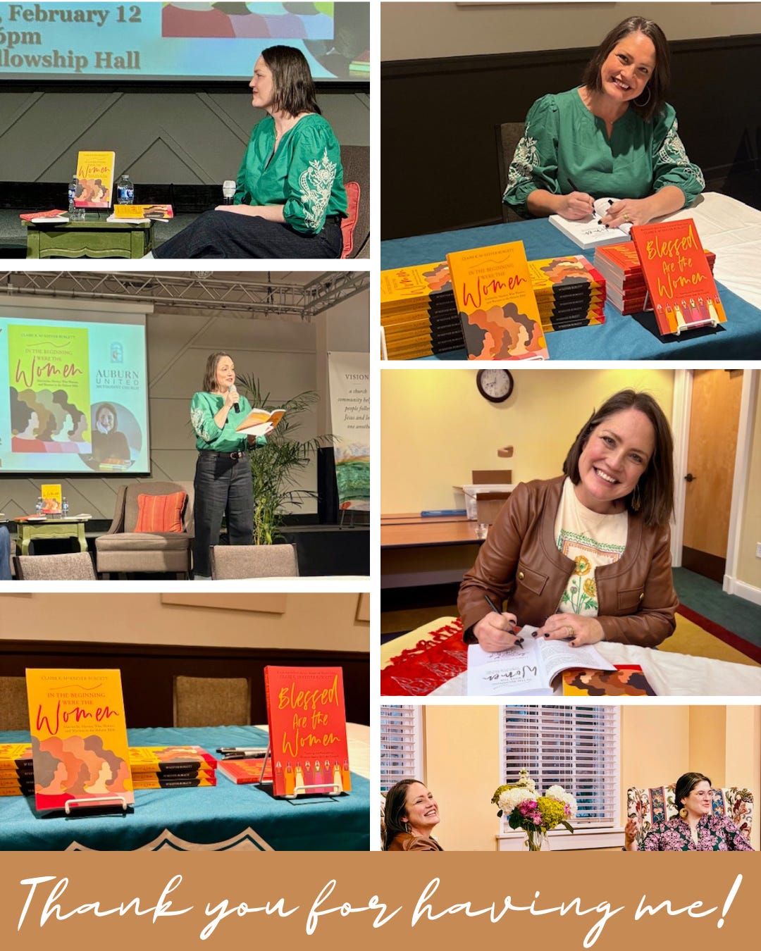 Thanks to First Presbyterian Church of Athens, GA and Auburn UMC for inviting me to share my books, women’s stories, and my heart with you last week! It was a true delight to be with you. Thanks, too, to Avid Bookshop and Auburn Oil Co. Booksellers for selling my books.